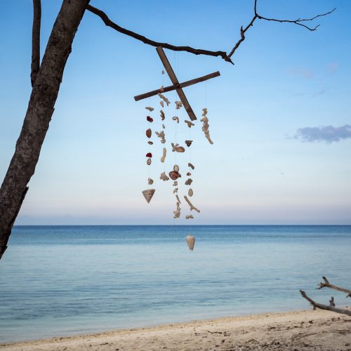 Da wir nur eine Nacht hier auf Meno haben, nutzen wir den Abend wieder für einen Strandspaziergang, auf dem uns bei jeden Schritt mehr bewusst wird, dass diese Insel dem Paradies sehr ähnlich sein muss. Hunderte Meter menschenleerer Strand, azurblaues, ruhiges Wasser und ein Sonnenuntergang, der einem*einer den Atem zu rauben vermag.